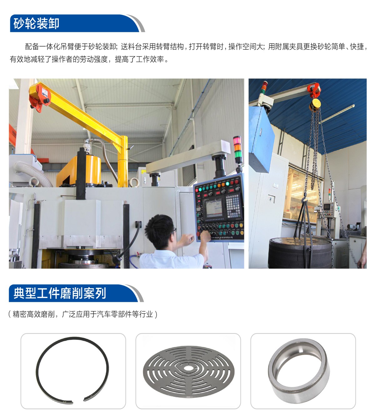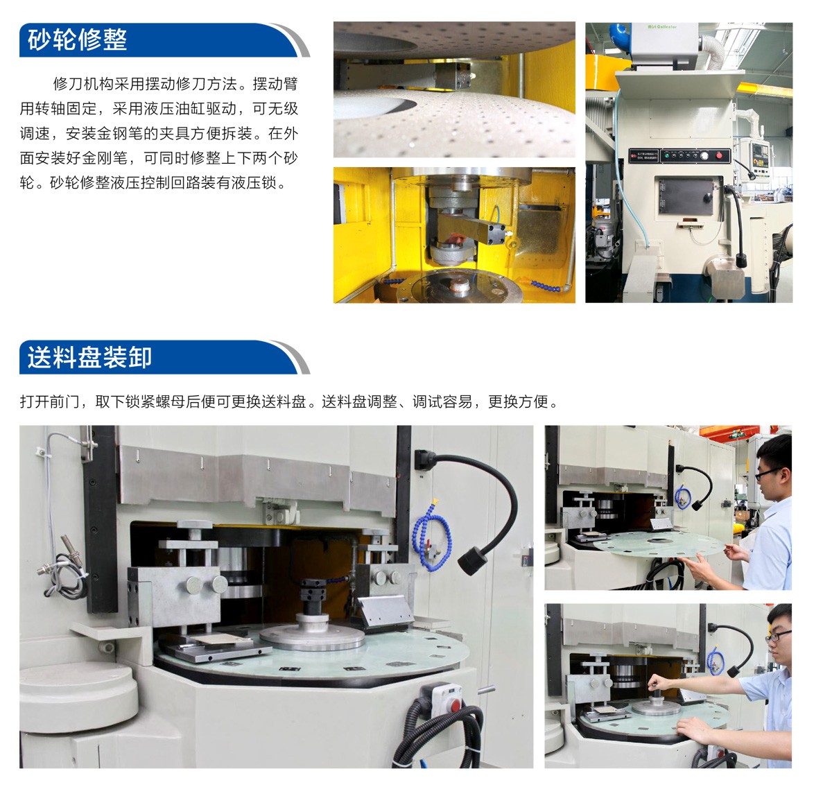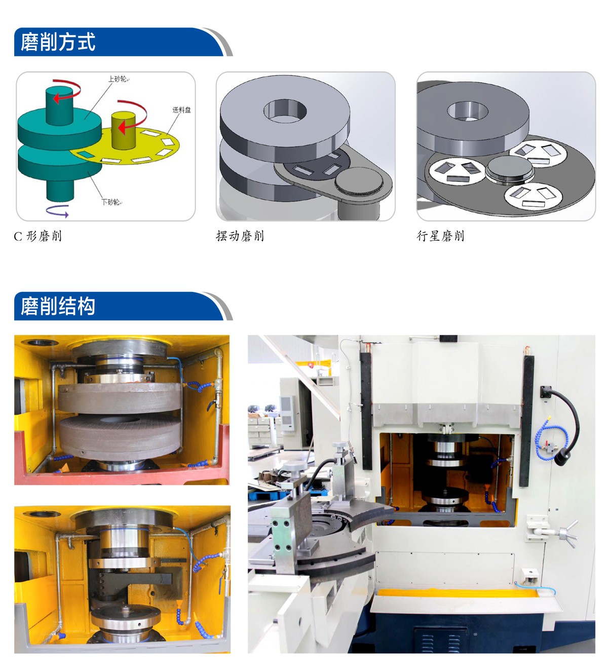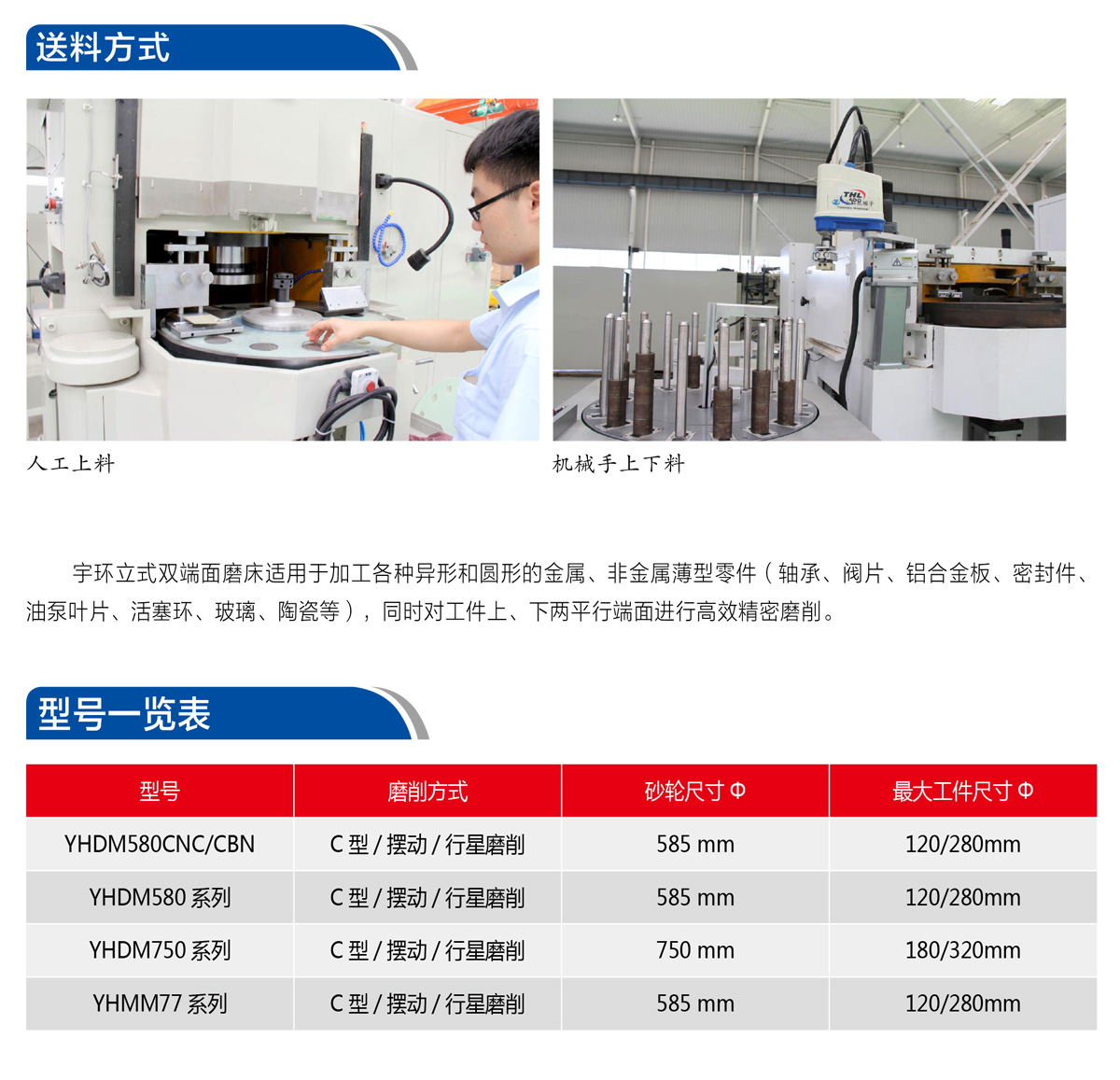 宇环立式双端面磨床适用于加工各种异形和圆形的金属、非金属薄型零件(轴承、阀片、铝合金板、密封件油泵叶片、活塞环、玻璃、陶瓷等),同时对工件上、下两平行端面进行高效精密磨削。